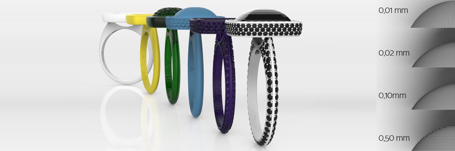 Sono materiali utilizzati per la Stampa 3D ad Alta Definizione con un grado di altissima precisione sino a 0.015mm (15 micron), studiati appositamente per modelli che necessitano di massima accuratezza con particolari estremamente dettagliati.