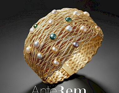 Render Bracciale con Fili d'oro e Diamanti Cabochon