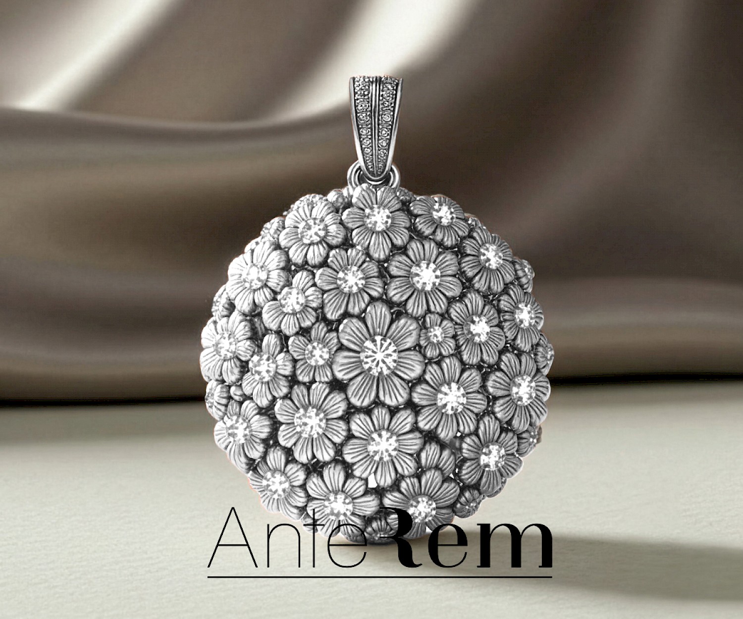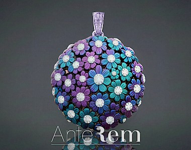 Ciondolo Fiore Titanio e Diamanti
